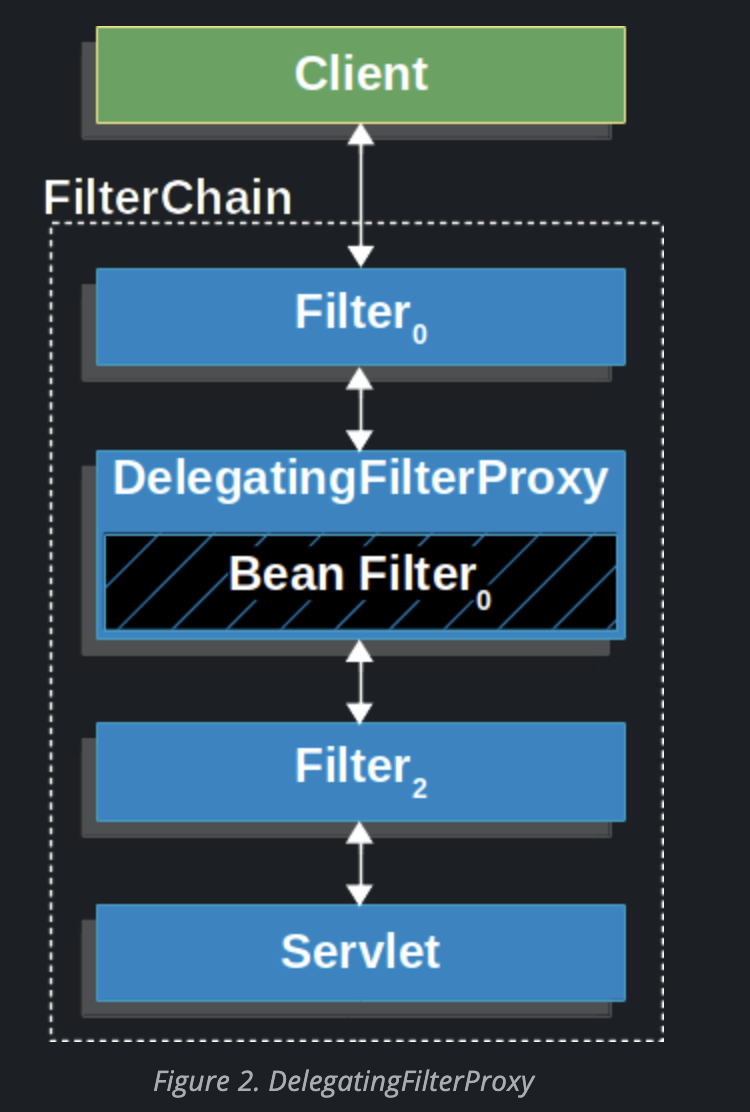 // For the example in DelegatingFilterProxy delegate is an instance of Bean Filter0