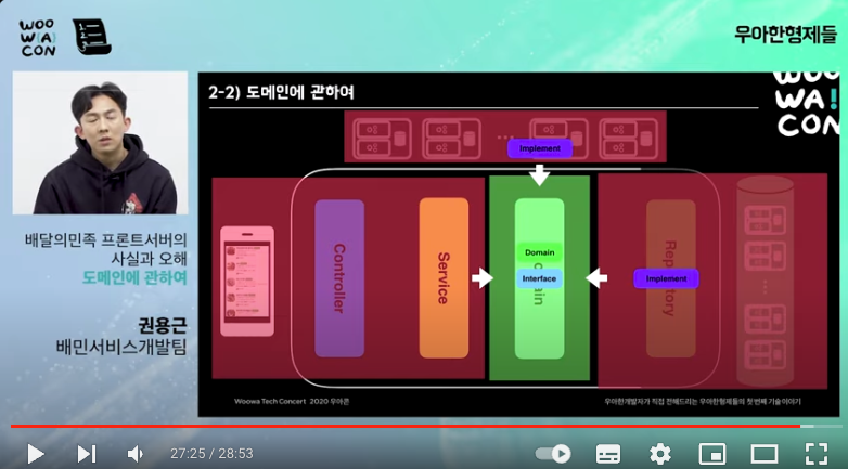 우아콘 2020에서 권용근님께서 말씀해주셨던 도메인 계층을 향하는 의존성이 헥사고날 아키텍처에서는 Port와 Adapter를 중심으로 이루어집니다.