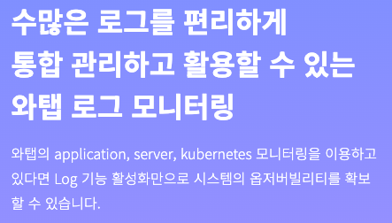 와탭의 로그 모니터링 서비스는 약 1년 9개월동안 성장해왔습니다. 감사하게도 로그 모니터링에 니즈가 있는 대형 고객사들를 비교적 빠른 시간 내에 만날 수 있었습니다. 게다가 On-Premise가 필요하다는 고객과 SaaS가 필요하다는 고객이 모두 있었으며, 자체적으로 로그 모니터링 시스템을 개발했던 회사와 모니터링 최대 경쟁사인 DataDog의 제품을 사용하던 고객도 있었습니다. 덕분에 최근 1년동안, 매우 많이 힘들기는 했지만, 로그 모니터링 서비스로서의 최소한의 기능은 갖추어졌다고 생각합니다.
